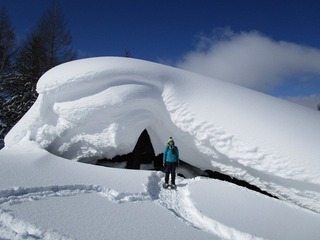 比較の為に私(165cm)が写ってみました。だいたい4~5mは積もっているでしょうか。
