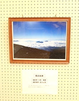 富士山の頂上からの相模湾の青と、空の青がとても美しい写真。こんな景色が見られるならがんばって登る甲斐がありますね。