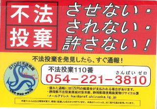 静岡県では【不法投棄、させない・されない・許さない】を掲げて、様々な対策や啓発活動を実施しています。