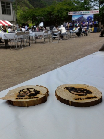 仁田自然保護官と私の二人で、焼印を押してプレゼントしました!