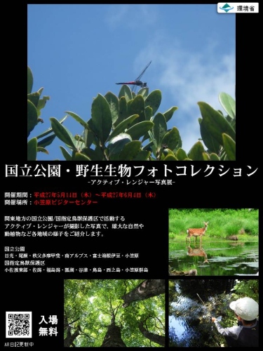 今年度も「国立公園・野生生物フォトコレクション-アクティブ・レンジャー写真展-」を開催します。1年をかけて関東地方環境事務所の管内を巡って行きます。まずは小笠原からスタートです。日時:平成27年5月14日(木)-6月4日(木)場所:小笠原ビジターセンター
