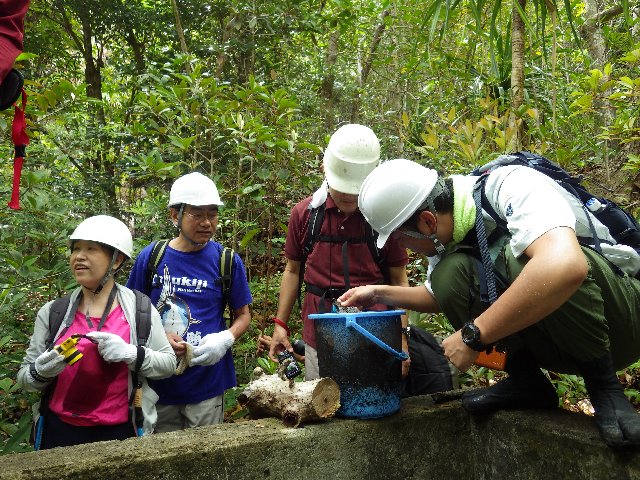 同行していただいた地元NPO職員の方からマイマイの生息地、探すに当たっての注意事項等を説明していただき、地面に落ちた葉の下、木の幹などいろいろな場所を探します。小さいものは数ミリ程度の大きさなので、探すのは一苦労ですが、一度見つけると目が慣れてくるのか時間が経つにつれ見つけることも容易になってきます。参加者の方は老若男女を問わず皆さん真剣で、マイマイの隠れ人気を肌で感じました。