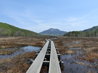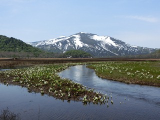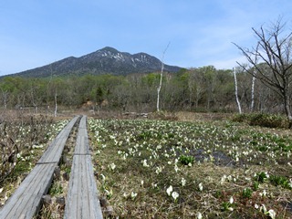 こちらは東北最高峰、燧ヶ岳とミズバショウ