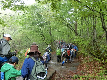 また、ミズバショウシーズンの休日のこの日、大勢の方が、鳩待峠から尾瀬ヶ原に入山しました。