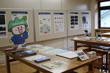 中では、箱根火山形成の歴史や、水蒸気爆発の展示パネル、図書コーナーがあり、
