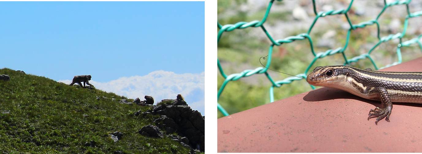 (左:荒川岳稜線のニホンザルの群れ。荒川岳ではよく出現するそうです。