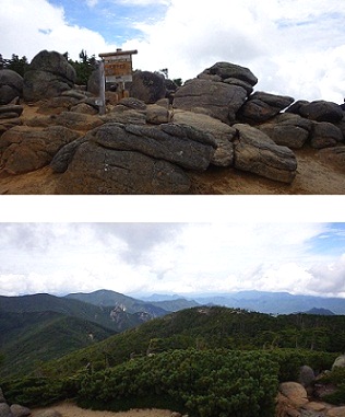 (上:北奥千丈岳山頂 下:山頂からの景色)