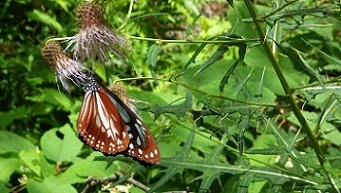 登山口がある大弛峠からの帰り道、林道でアサギマダラが数十匹飛び交っているのを見つけました。一体どんな場所からはるばる旅をしてきたのでしょうか。
