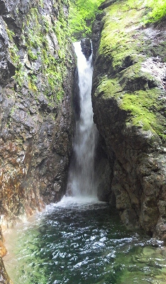 滝への道中は自ずと沢を上るのですが、沢なため地形の変化もあり、右岸や左岸を行ったり来たり、途中渡渉もあります。そして、ゴーッという音がする滝に近づく間際にはちょっとした岩場を上る場面も...。