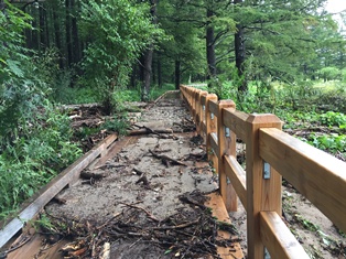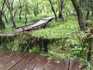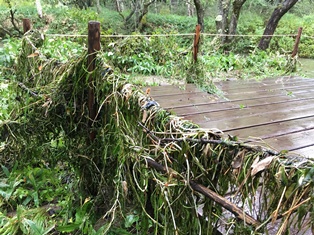山側から土砂が流れ込んだようですが、幸いにも木道自体は大きなダメージを受けていないようです。