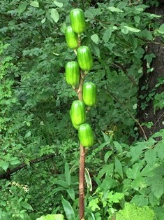 キュウリを見つけました。いいえ、オオウバユリの果実です。