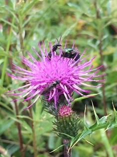 キュウリ!? ニッコウアザミに集まる昆虫達