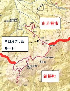 今回のルートは外輪山を南足柄市側より登り、箱根町との境あたりを主に見学しました。