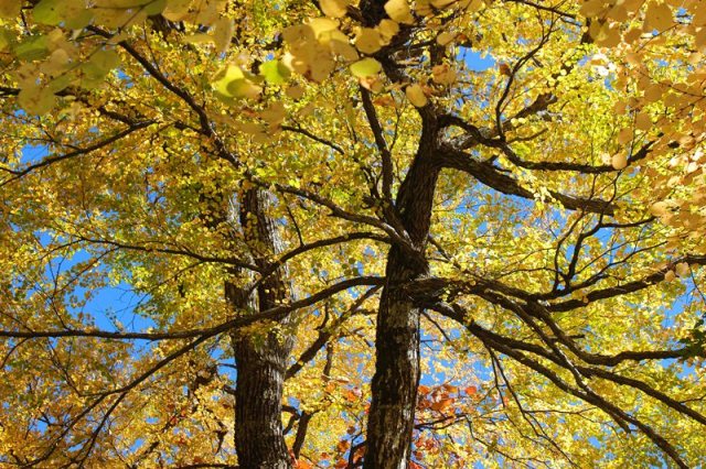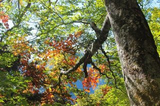 (ブナの木に絡み付いて紅葉するヤマブドウ 10月8日撮影)