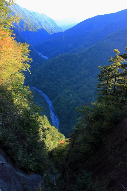 (南アルプス林道からの野呂川の深い谷。この写真では絶景っぷりを十分お伝えできません...