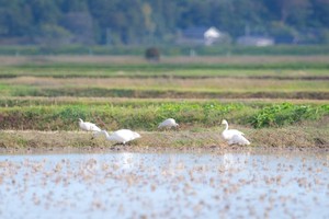 <トキとハクチョウ:2015/10/9撮影>