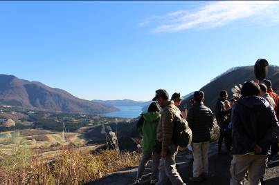 野外実習の湖尻峠・長尾峠では山体崩落や地層の説明を聴きました。