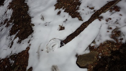 この日、巡視中に危険な箇所は見られませんでしたが、人が通った跡は凍結しやすいため登山される際は足下に注意をしてください。また、標高の低い場所では溶けた霜によってぬかるんでいる箇所が多かったため、雪や凍結がない場所でも注意が必要です。