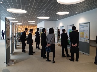 紹介するパネルを展示し、熱心に展示を眺めたり、説明を聞く参加者の姿が