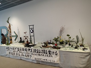 イメージした生け花「ジオ生け花」の大作が飾られ、皆さん興味深そうに