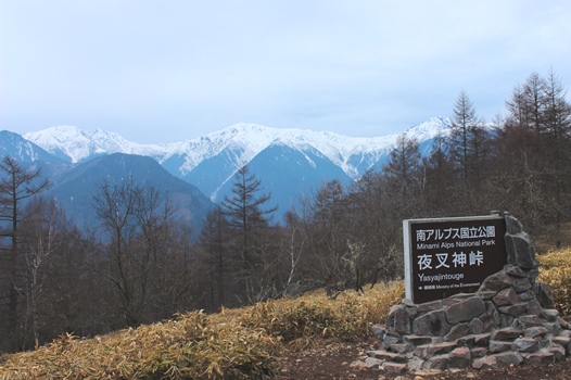 また、夜叉神峠からは雪をかぶった白峰(白根)三山を見ることができました。