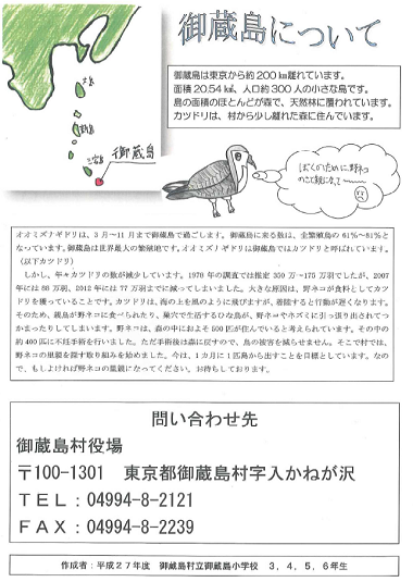 御蔵島の現状、里親事業の取組について知った御蔵島の小学生が自発的に