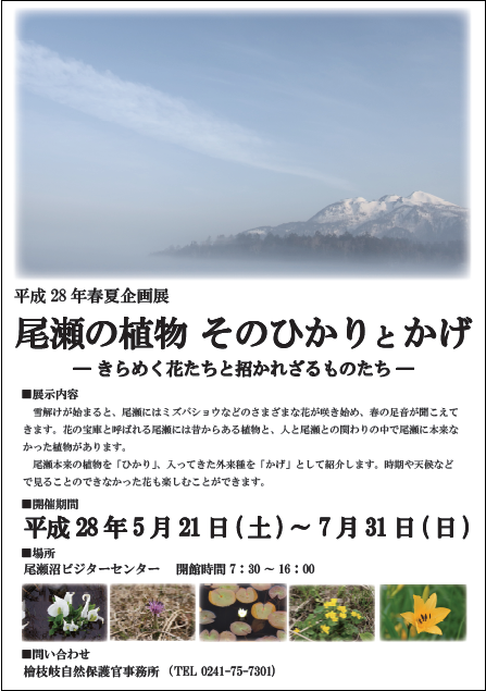先日お知らせした尾瀬沼ビジターセンターの企画展示のチラシです。