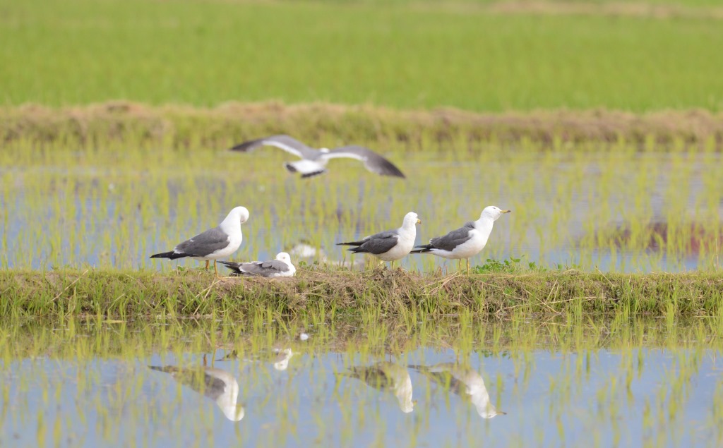 <水田にて休息するウミネコ>
