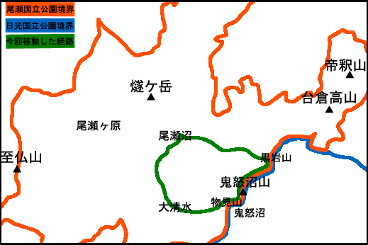途中、鬼怒沼に寄り道してから境界を離れ、