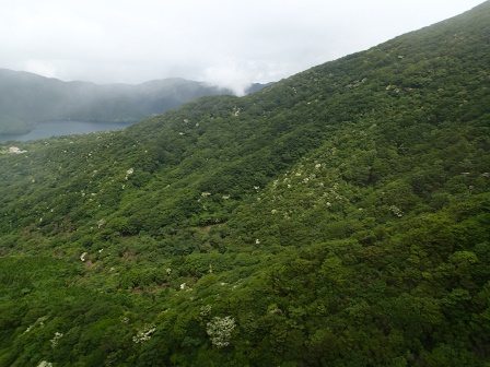 駒ヶ岳ロープウェーからの眺めです。所々白くなっているのを確認できますでしょうか?
