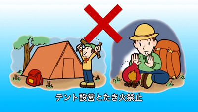 ・バーナーやコンロの使用は禁止されていませんが、火災を起こすおそれがあるため、山小屋周辺や人ごみを避け、周囲に注意して使用するようにしましょう。