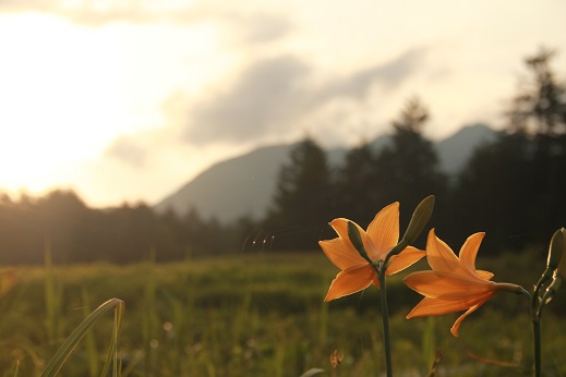 ニッコウキスゲと同じ山吹色に染まるのでした。