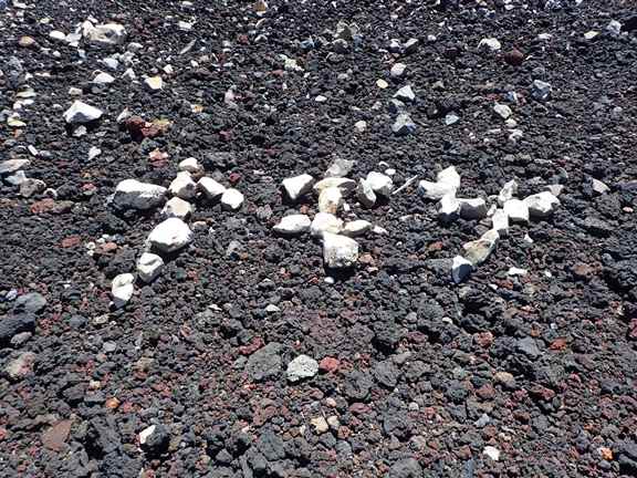 今年の開山前の準備中に、山頂で写真の石文字を発見しましたが、この行為は法律で禁止されています。