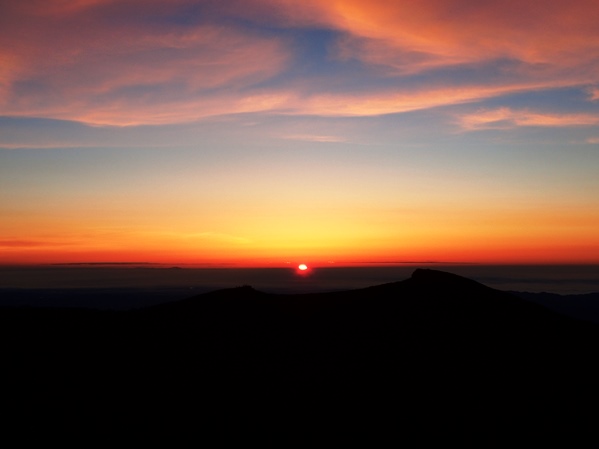 (7月10日の御来光 4:25 富士山頂剣ヶ峰にて)