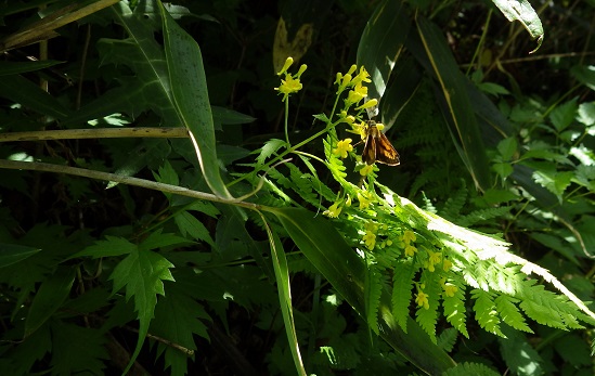 林道は岩場や法面が続くため比較的植物の観察はしやすいです。また、樹高の高い木なども沢側に生えていれば近くで花を見ることが出来ますし、それを目当てにやってくる昆虫なども観察ができます。