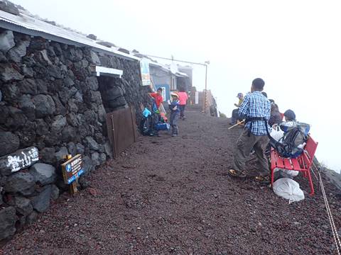 富士宮口元祖七合目で休憩するお子さん連れの登山者(7月25日撮影)