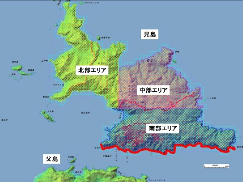 本日は兄島の乾沢以北の内陸部、兄島の全周(海岸よりセットバックした全周)と人丸島・瓢箪
