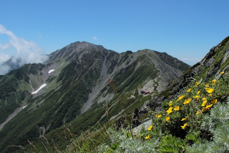 (ああ、夏山。キンロバイと間ノ岳 7月19日撮影)