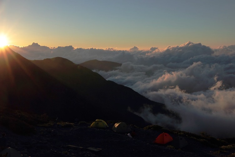(「混雑していない」北岳山荘のテント場。7月20日)