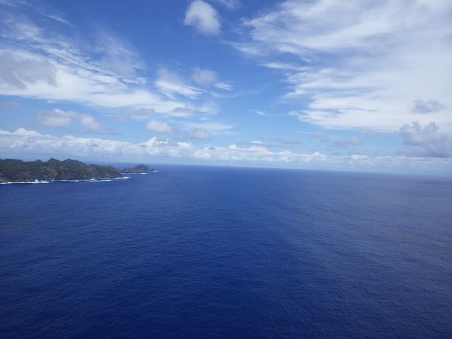 いつも汗だくになって登っている兄島までひとっ飛び、