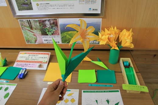前回の企画展示では、訪れた方々に折り紙で