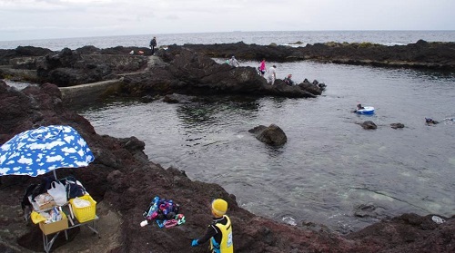 三宅島の長太郎池は伊豆大島のトウシキ遊泳場と同じように溶岩に囲まれた海水浴場です。