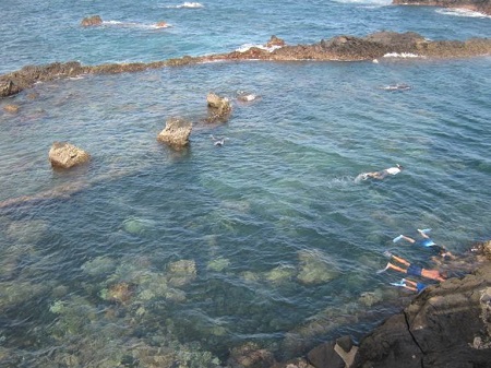 外からの波が岩で遮られるため穏やかで、フィッシュウォッチングやスノーケリングに最適です。