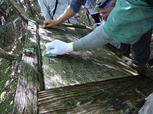 夏休みも終わり間近となった8月26日、日光パークボランティア8名とともに中禅寺湖周回線歩道南岸で清掃活動と標識磨きを行いました。歌ヶ浜駐車場から千手ヶ浜までの約12㎞を7時間。