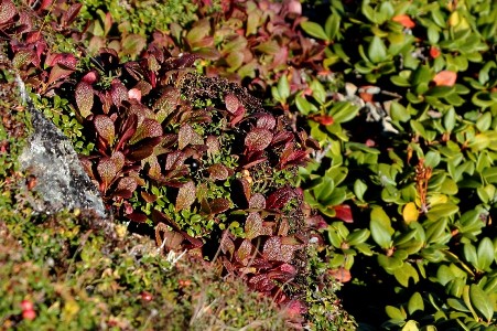 (色づき始めたウラシマツツジ。仙丈ヶ岳山頂付近。9月2日撮影)