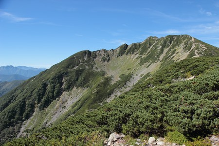 標高は3,033m、登山口の北沢峠からは高低差約1,000m。日帰りの場合、コースタイムは