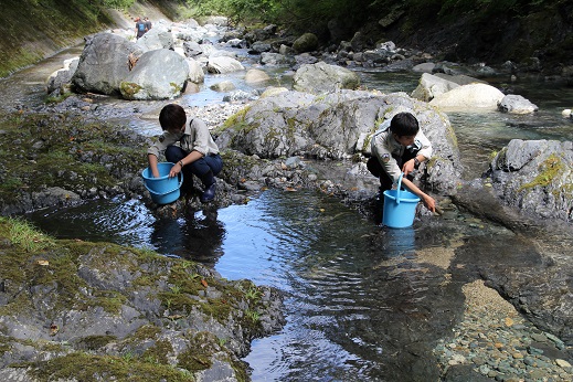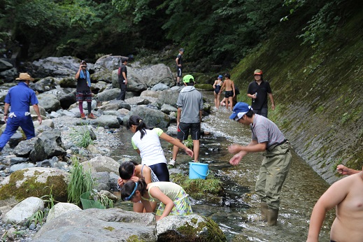 尾瀬沼ビジターセンターのスタッフも放流のお手伝い。