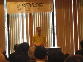 来賓の方々よりご挨拶をいただいたあと、那須平成の森の5年間の歩みをご紹介しました。