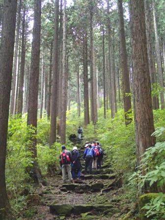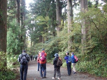最長のものは38m程あると言われる杉を両側に眺めながら