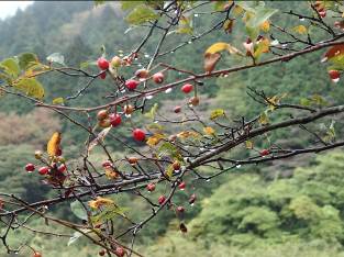 カマツカの実やツタリンドウも赤い実を見せてくれ
